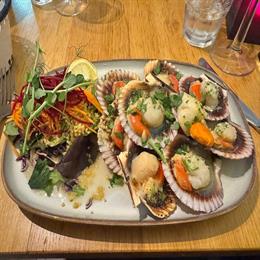 We have our own fishing boat so our langoustines, lobster and squat lobster are landed daily at 4pm. Local boats land us other treasures including monkfish, dover sole, cod, halibut, john dory, haddock, plaice, scallops and squid. We use local oysters and crabs, mussels, smoked salmon and smoked mackerel. Corn-fed chicken is from Letterfindlay Food Company and our lean flavoursome steak comes from highland cows born and bred locally at